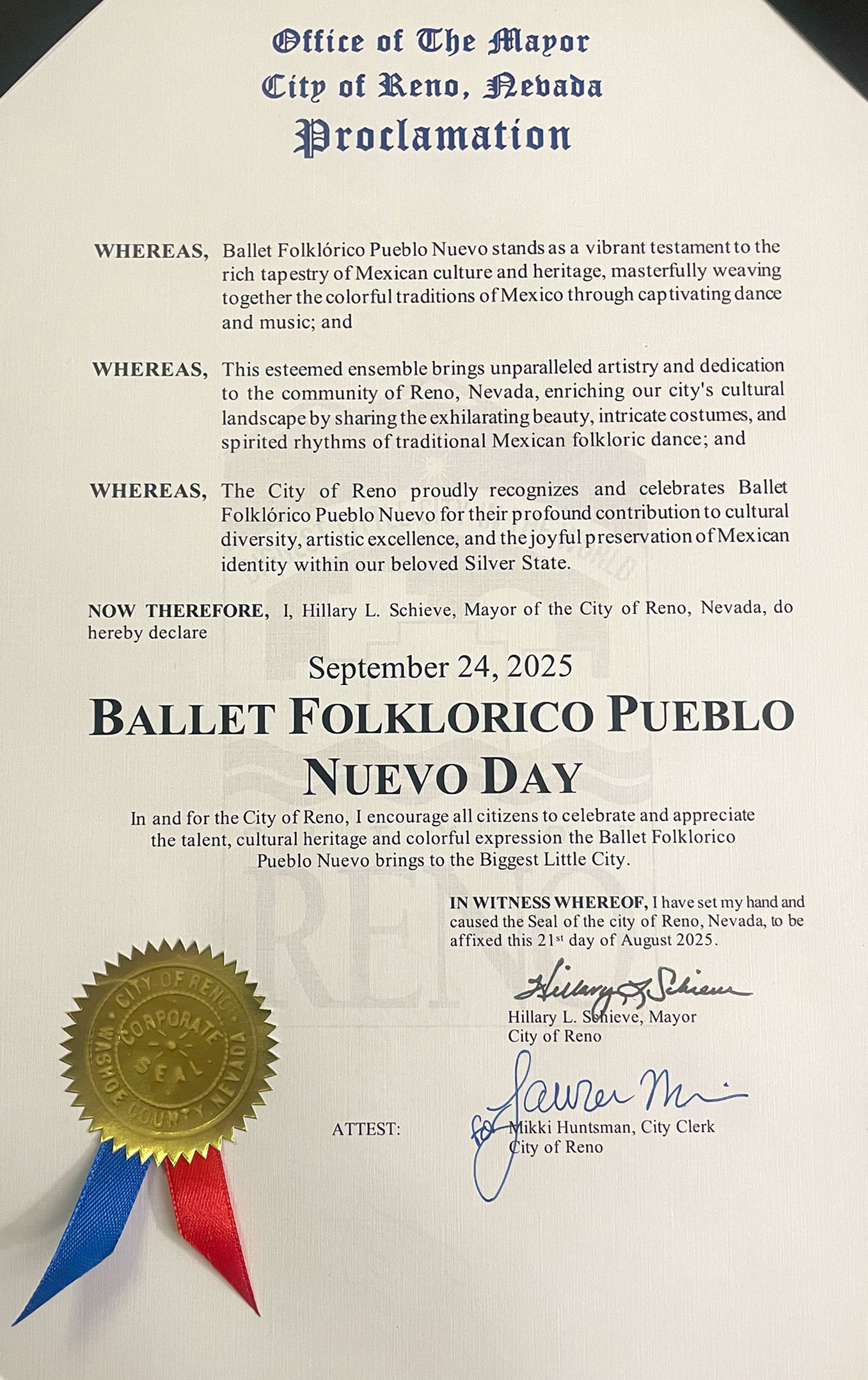 I, Hillary L. Schieve, Mayor of the City of Reno, Nevada, do hereby declare September 24, 2025 Ballet Folklorico Pueblo Nuevo Day…